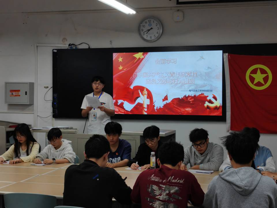 团委学生会组织部干部黄北带领全体团员深入学习了共青团章程和团员义务与行为准则,结合即将到来的教育部本科教育教学审核评估,倡导团员们应当主动亮身份、树形象,在文明校园创建、课堂纪律维护等环节中展现青年担当。